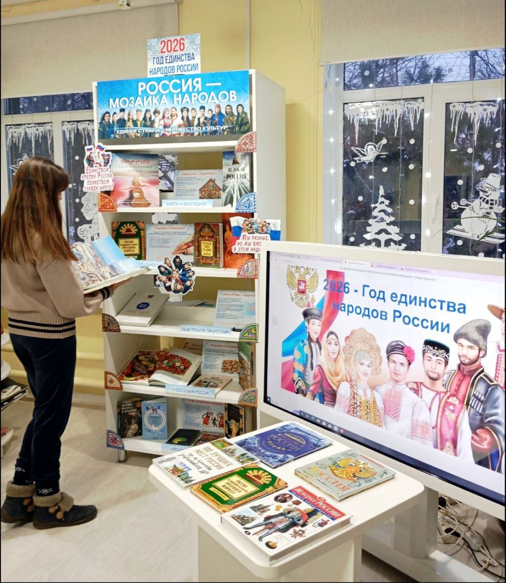 В библиотеке имени Чехова открылась выставка «Россия — мозаика народов», приуроченная к Году единства народов России. Экспозиция знакомит посетителей с культурным многообразием страны, где десятки народов сохраняют свои уникальные традиции и историю.